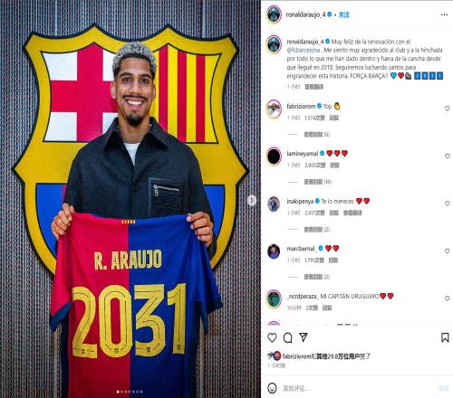 体育资讯1月24日报道宣称 巴萨官方宣布与队内中卫阿劳霍续约至2031年,阿劳霍社媒发文庆祝续约。