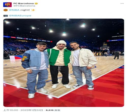 观战NBA法国赛巴萨官方社媒晒费兰、佩德里、加西亚合照