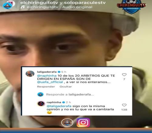 记者Rafa Guerrero在社交媒体中艾特拉菲尼亚,再次提及裁判的判罚问题:“在西班牙,执法你的20名裁判中有10位来自欧足联,看看我们是否能够理解......”