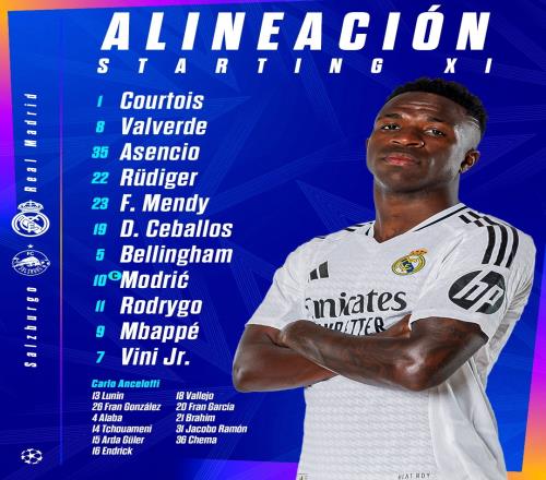 体育资讯1月23日报道宣称 欧冠联赛阶段第7轮,皇马主场对阵萨尔茨堡红牛。赛前,皇马官方提前公布了本场的首发名单。