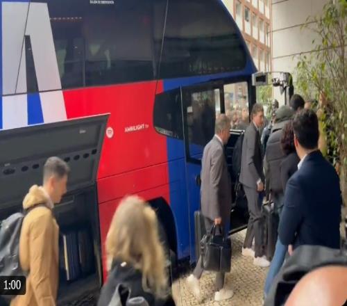 体育资讯1月20日报道宣称 据记者Joel Gadea Antón报道,在因恶劣天气导致航班延误1个半小时之后,球队终于抵达里斯本的酒店。