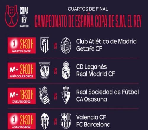 体育资讯1月21日报道宣称 西班牙国王杯四分之一决赛赛程时间出炉,皇马和巴萨将分别在2月6日和7日出战。