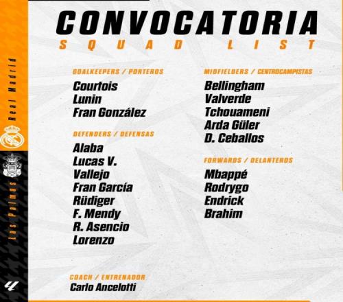 皇马本场比赛名单如下: