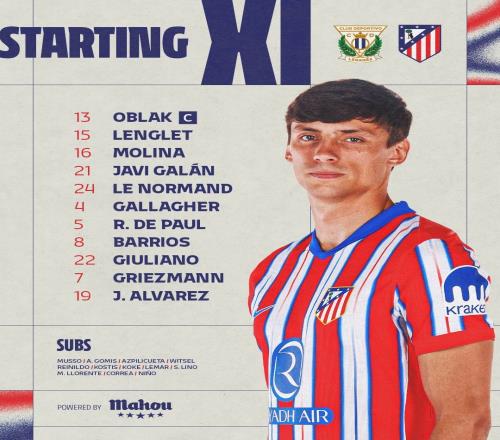 马竞客战莱加内斯首发:小蜘蛛、格列兹曼先发,加拉格尔出战