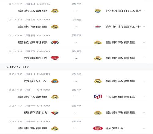 皇马后续赛程↓
