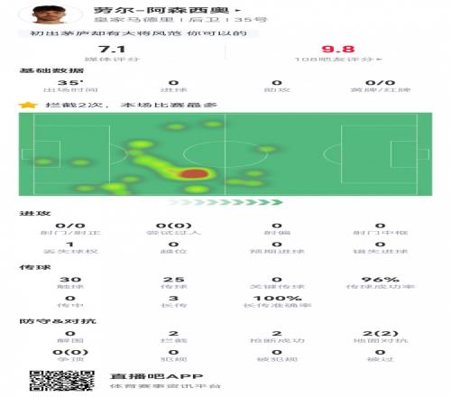 体育资讯1月10日报道宣称 西超杯半决赛,皇马3-0马洛卡晋级决赛将战巴萨。此役皇马21岁中卫劳尔-阿森西奥替补登场35分钟表现出色,球员全场重点数据如下↓