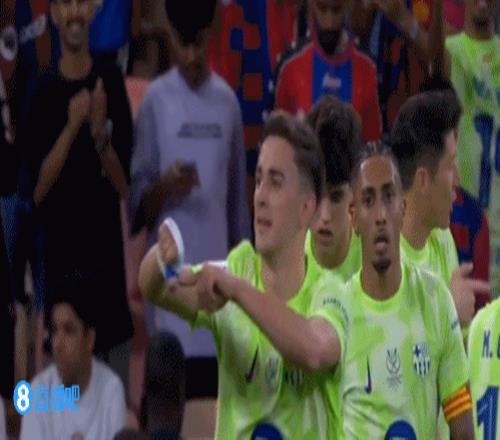 第17分钟,加维破门随后对着场边做出了奥尔莫同款庆祝动作。