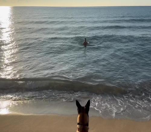 费兰-托雷斯社媒晒出自己在海边游泳的视频,狗狗在沙滩上守护着他。费兰配文:“2025年来了!今年第一游!”