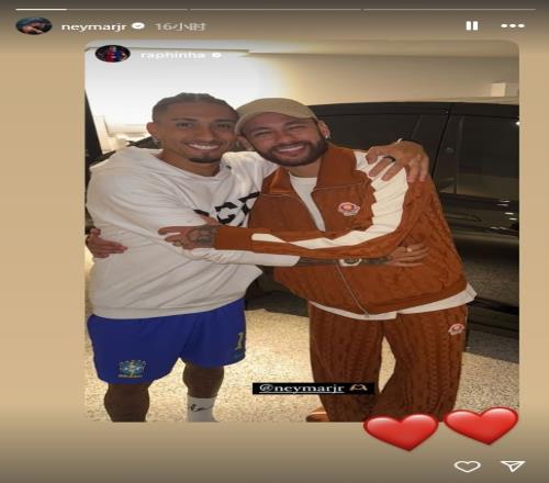 拉菲尼亚先是晒出了这张合照,随后内马尔转发并配上了两个爱心,这对巴西同胞看起来关系出色。