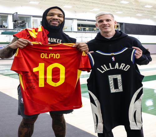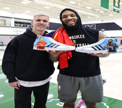 奥尔莫利用假期机会拜访了雄鹿,并与利拉德会面,两人互赠球衣和球鞋,奥尔莫还展示了自己的篮球技巧,并顺利用脚将篮球踢入篮网内。