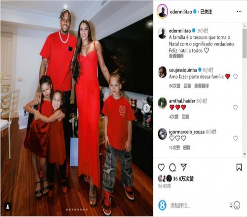 米利唐晒出与家人的合照,并写道:“家庭是宝藏,它让圣诞节变得真正有意义。祝大家圣诞快乐。”