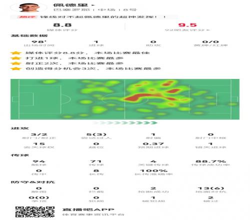 官方:佩德里当选本场最佳1球+4关键传球3造良机8长传全成功