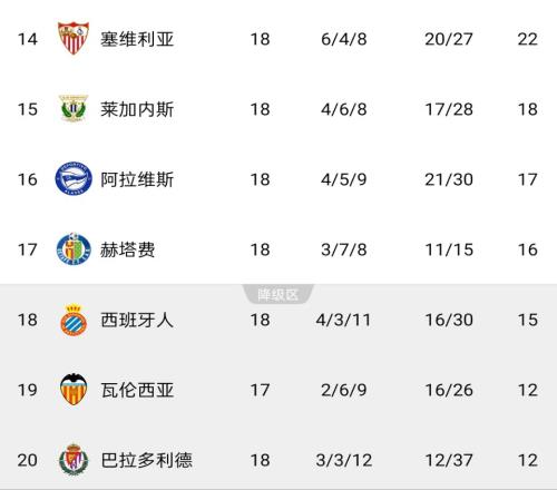 真要降级啊瓦伦西亚西甲17场仅胜2场,目前排名倒数第二