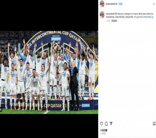 主帅安切洛蒂也通过社媒晒出全队赛后的捧杯照,并配文:“很高兴为所有皇马球迷们赢得了一座新的冠军。马德里前进!仅此而已。”