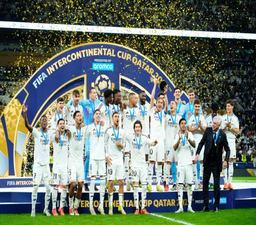 体育资讯12月19日报道宣称 洲际杯决赛,皇马3-0击败帕丘卡,夺得本赛季第2冠。颁奖仪式,队长莫德里奇举起洲际杯奖杯。