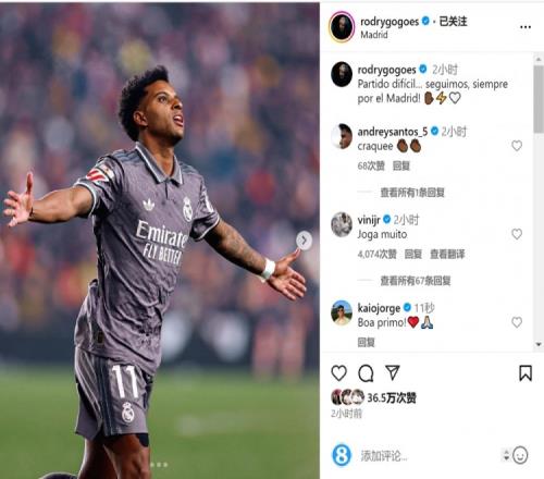 传射建功!罗德里戈社媒:艰难的比赛,永远为皇马而战!