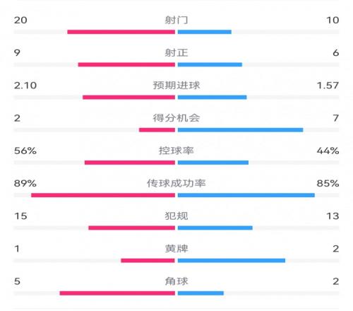 皇马32亚特兰大数据:射门1020,射正69,得分机会72