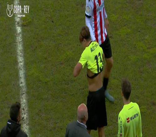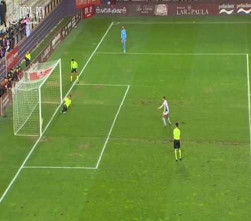 赫罗纳与洛格罗涅斯在前120分钟0-0战平,洛格罗涅斯首发门将在加时赛一次出击扑救时头部撞伤,球队在没有换人名额的情况下只能让19岁的边后卫阿尔诺客串门将。