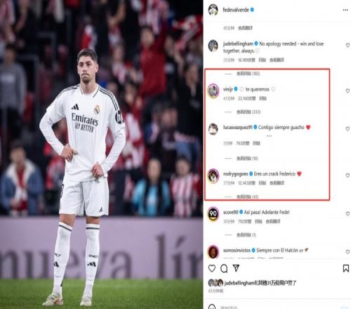 在评论区,贝林厄姆、维尼修斯、巴斯克斯、罗德里戈都评论表示了支持。