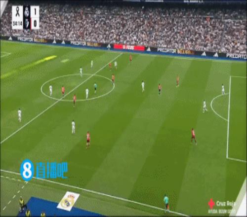 维尼修斯第34分钟兜射破门,皇马1-0领先奥萨苏纳。