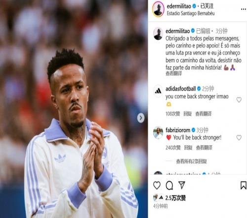 目前米利唐更新了社媒:“感谢你们所有人的留言、关心和支持!这只是另一场胜利的战斗,我已经知道这条康复之路了,放弃不是我故事的一部分!