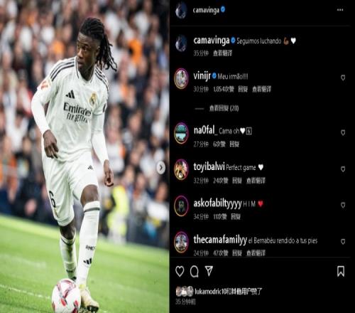 赛后,卡马文加社媒写道:我们继续奋斗!