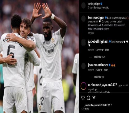 体育资讯11月9日报道宣称 皇马4-0大胜奥萨苏纳,首发出战的吕迪格更新社媒庆祝胜利。