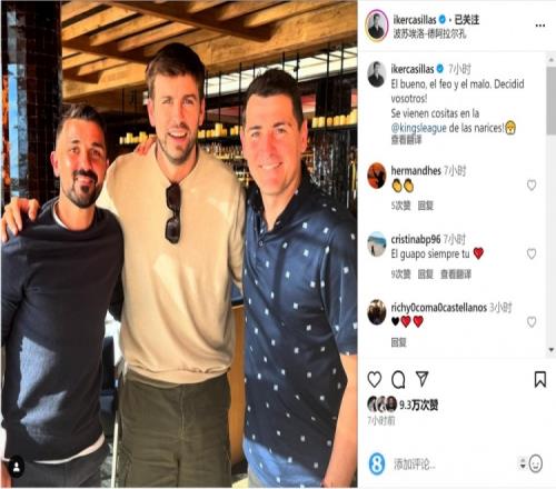 卡西与昔日的俱乐部对手、国家队队友皮克、比利亚相聚,他在社交媒体上晒出合照,为皮克创立的国王联赛做宣传。