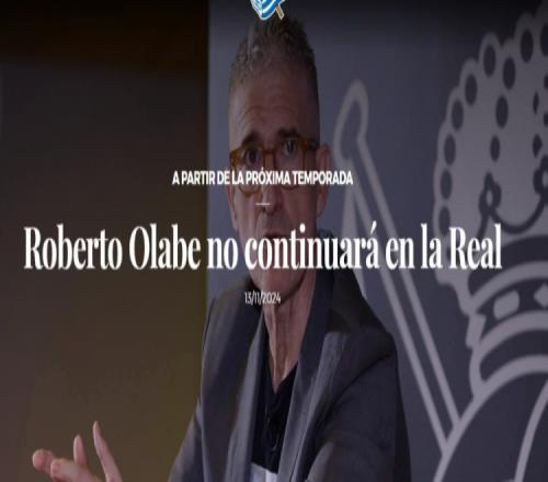 体育资讯11月13日报道宣称 皇家社会官方消息,俱乐部体育总监罗伯托-奥拉贝宣布自己将在本赛季结束后卸任。