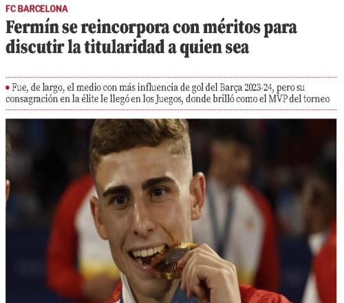 费尔明在奥运会期间就表示,他会缩短假期回到巴萨,因为他已经休息得够多了。换句话说,他并未满足于已取得的荣耀。如果有什么建议的话,那就是在开始他的第二个顶级赛季时保持冷静,因为他现在已经是全球知名的球员,而不再是一年前从西乙B级别升上来的“无名小卒”。