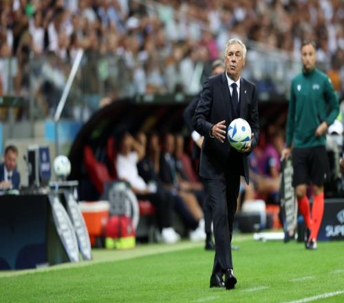 体育资讯8月15日报道宣 欧超杯决赛,皇马2-0亚特兰大队史第六次捧杯。赛后,皇马主帅安切洛蒂出席新闻发布会。