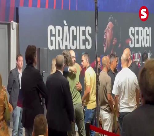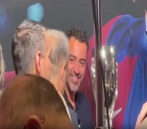 《每日体育报》在其官方社交媒体上传了视频,能够看到拉波尔塔主动找哈维交流,双方互相拥抱,哈维保持着微笑,拉波尔塔还向哈维的妻子打了招呼,又与哈维的儿子开了玩笑。