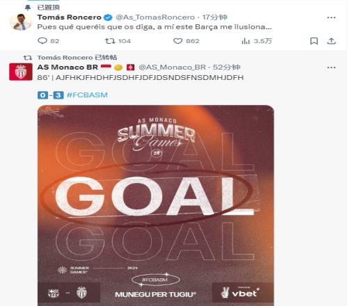 体育资讯8月13日报道宣 今天凌晨,巴萨在甘伯杯中0-3不敌摩纳哥,赛后《阿斯报》主编、皇马拥趸龙塞罗在推特发文调侃死敌,并置顶了动态。