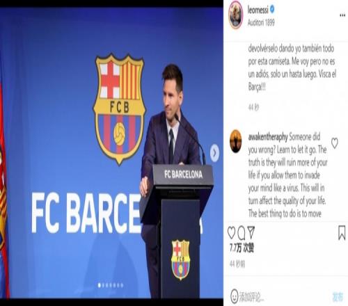 梅西在发布会后还通过社媒发文,表示:“我很想继续留在这里,我为这个目标付出了一切,但最终没能达成。我要离开了,但这不是告别,只是稍后再见。巴萨万岁!!!”