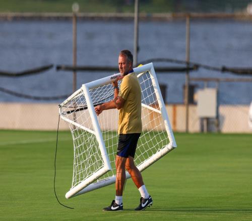 Toni Juanmartí晒出弗里克在训练场上自己搬运球门的照片,并写道:“我不知道弗里克在巴萨会有怎样的执教表现。但他亲自放置锥形筒、计算步数、搬运球门,还带着球场地图。”