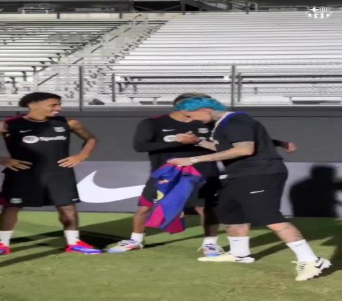 跨界交流!莱万等球员向阿根廷音乐人赠送巴萨球衣