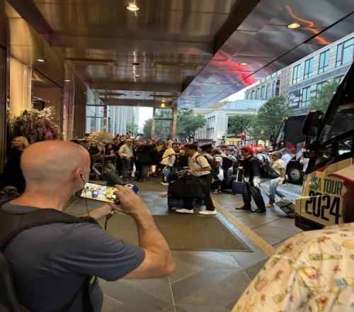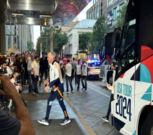 皇马开启美国季前赛之旅,Guillermo Rai在社交媒体上晒出照片,确认皇马已经抵达下榻的酒店,众多球迷在酒店外守候。