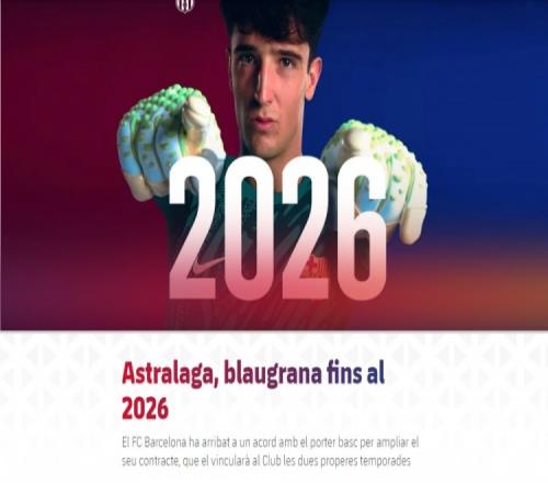 官方:巴萨与20岁门将阿斯特拉拉加续约至2026年