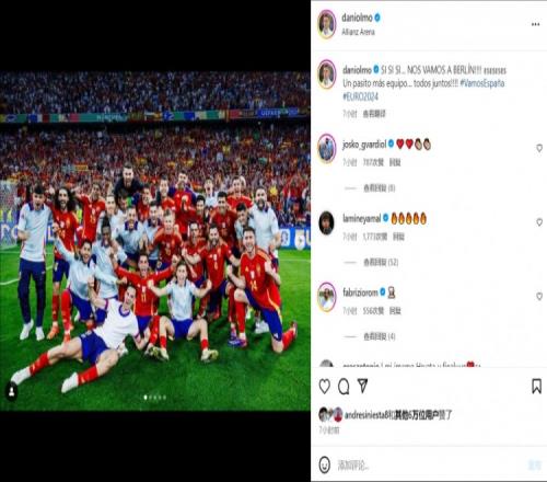 晋级决赛!去柏林!西班牙众将社媒庆祝球队胜利