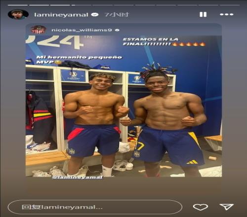 作为最年轻的欧洲杯进球者,亚马尔转发了队友尼科晒的更衣室合照