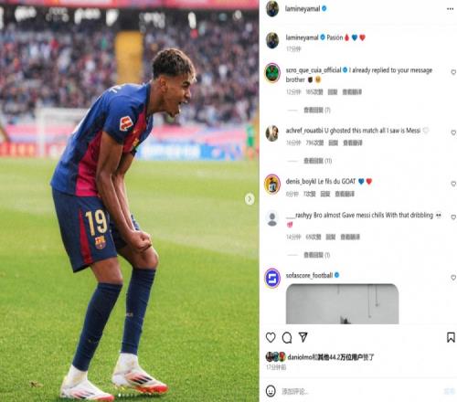 本场比赛亚马尔首发出战表现活跃,18次过人尝试10次成功,赛后他也在个人社媒晒出庆祝照片,配文写道:“激情!”
