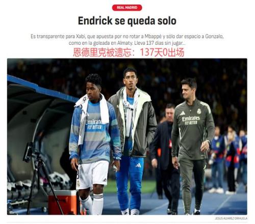 《阿斯报》表示,恩德里克在皇马的地位,已经从“第二等”降到“第三等”。皇马踢单中锋阵型的话,姆巴佩是雷打不动的主力;如果姆巴佩被换下,阿隆索优先选择贡萨洛-加西亚。至于恩德里克,阿隆索根本没有考虑。