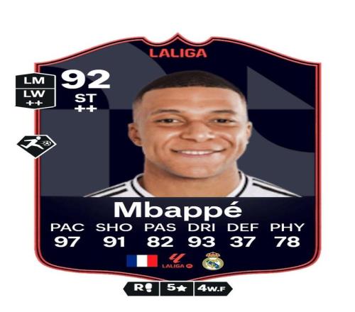 据权威FC博主FUT POLICE LEAKS消息,姆巴佩当选西甲9月最佳球员。