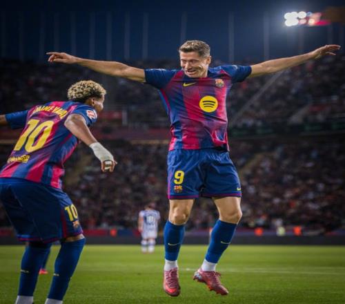 在上赛季巴萨和皇家社会主客场两回合交锋中,两支球队虽然都取得了1胜1负的战绩,但巴萨在主场以4-0血洗了对手,如今再度相遇,弗里克肯定想要延续强势的发挥,在主场沿用了4231的阵型,什琴斯尼镇守龙门,马丁、克里斯滕森、阿劳霍和孔德构筑后防,佩德里和德容搭档双后腰,拉什福德、德罗和巴德吉坐镇中场,单箭头则是莱万。