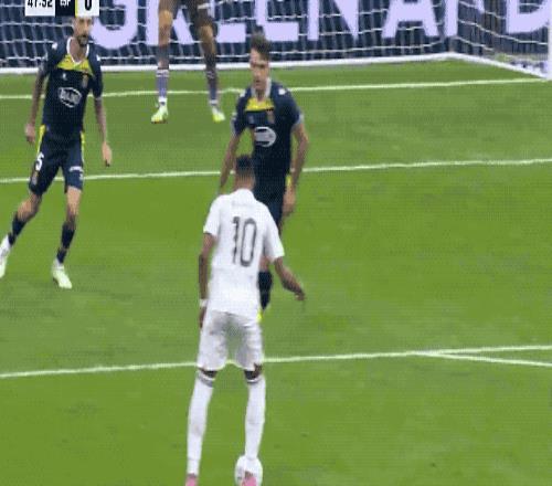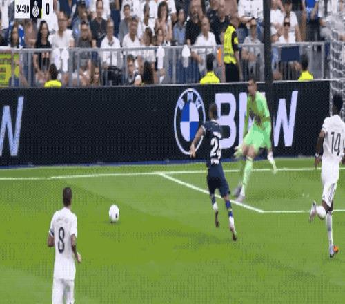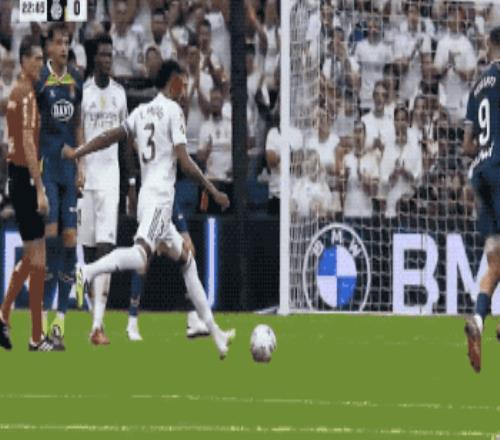 第43分钟,皇马双星连线,维尼修斯利用速度节奏完成过人,之后的传中也相当到位,姆巴佩跟进,无人防守的情况下,居然没能将球打进。