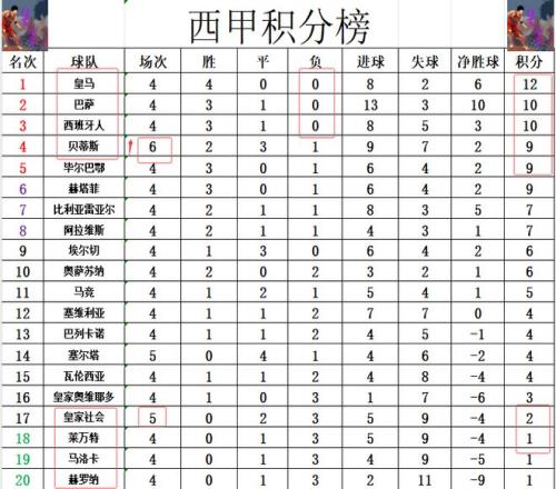 西甲最新积分战报贝蒂斯击败皇家社会止颓势差巴萨1分升至第4