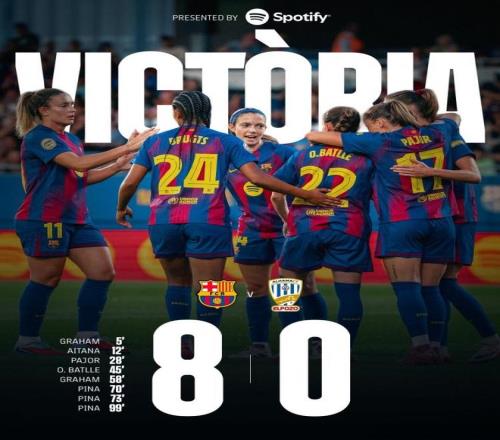 残暴友尽局!巴萨女足西甲首轮80狂胜升班马,皮纳上演帽子戏法
