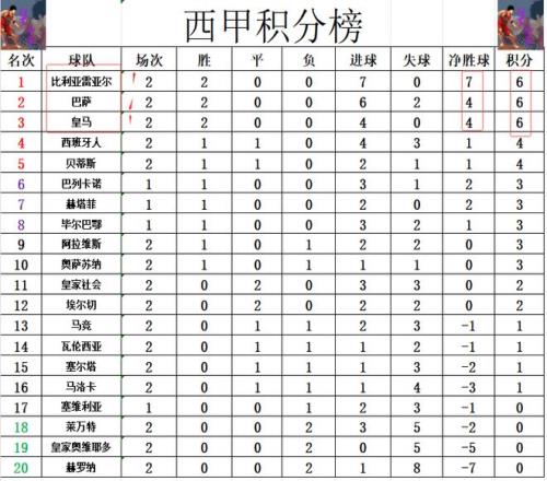 积分榜方面,比利亚雷亚尔和皇马今天都是大胜,也夺取了新赛季2连胜,比利亚雷亚尔狂胜后超过巴萨3个净胜球登顶。皇马则是追上了巴萨的净胜球,只不过进球少了2个,皇马排在巴萨之后紧紧追赶。