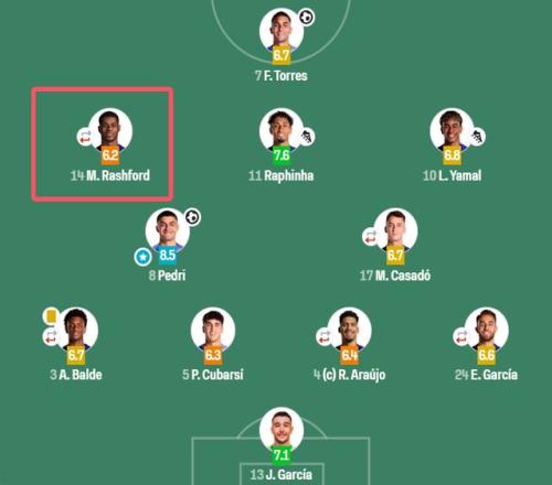 巴萨主帅不惯人!拉什福德首发半场被换:仅1脚射门,6.2分拖后腿