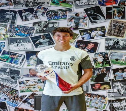 雷速体育8月21日报道宣称 昨日,皇马新星贡萨洛·加西亚在皇马体育城领取了世俱杯金靴奖。